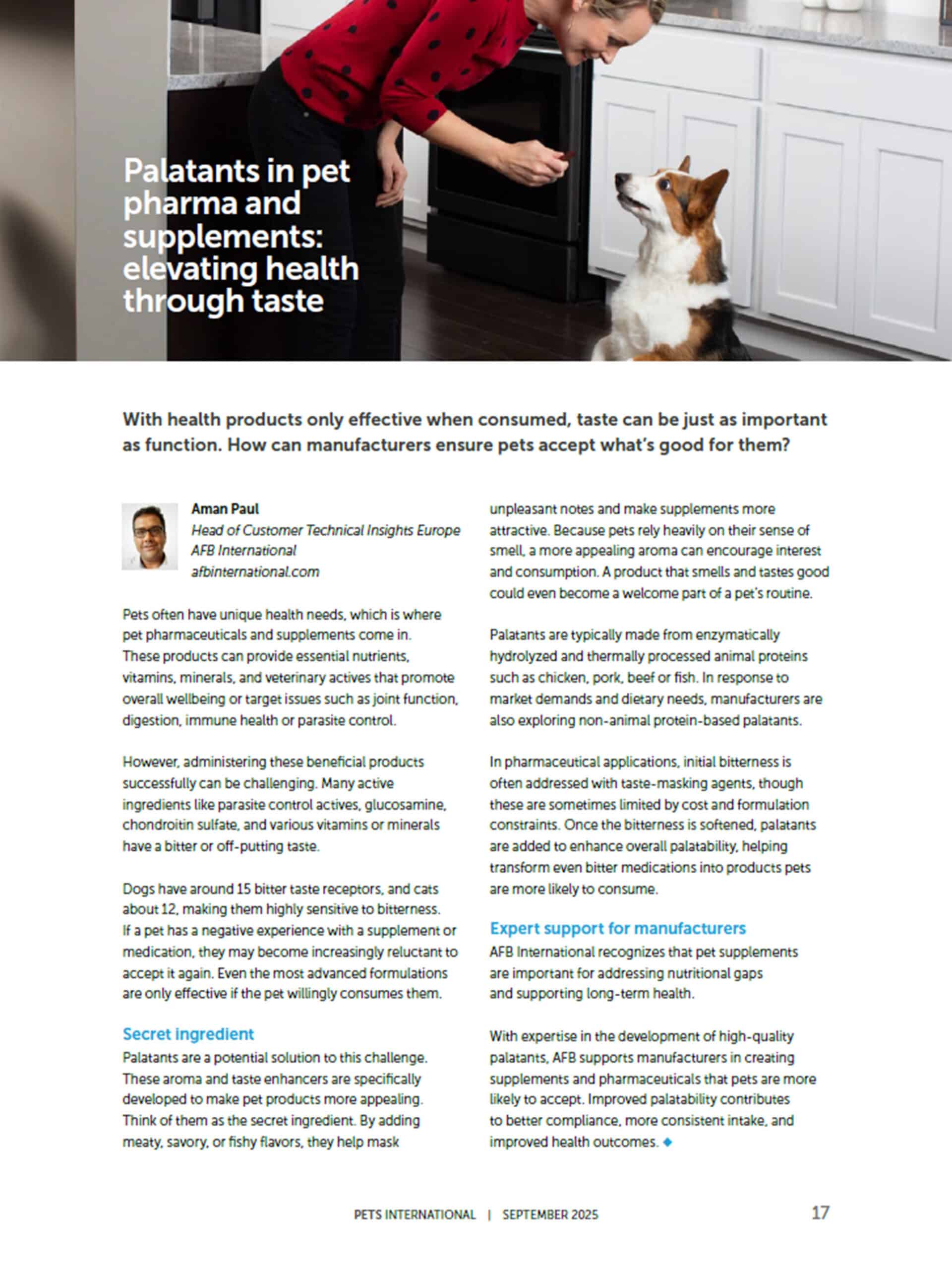 AFB International was founded in 1986 in St. Louis, Missouri, USA, with a vision to create the best palatants and make pet food taste great. Today, the company is international, with resource centers and production facilities across the world. The palatant profile is formulated to deliver optimal performance for each…